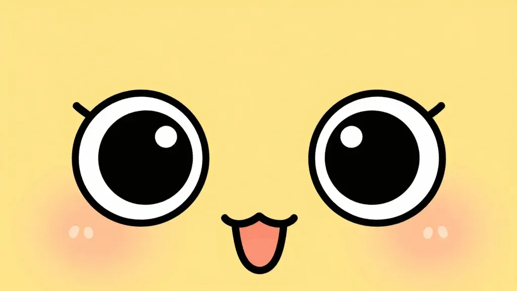 Two glossy, cartoonish faces peek from the edges against a warm, golden-lit yellow background. The composition is centered, with soft shadows and highlights enhancing the playful and whimsical mood.