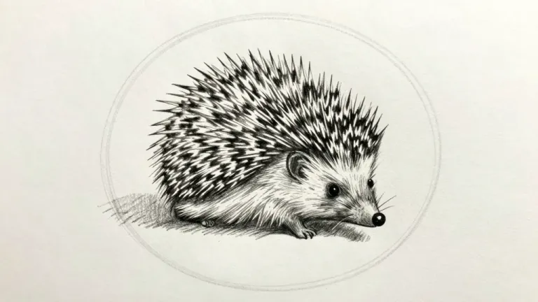 A detailed, monochromatic image of a hedgehog curled up, with its spines sharply defined and fur softly textured. The diffused, soft light highlights the hedgehog's features, creating gentle shadows against a blurred, light gray background.