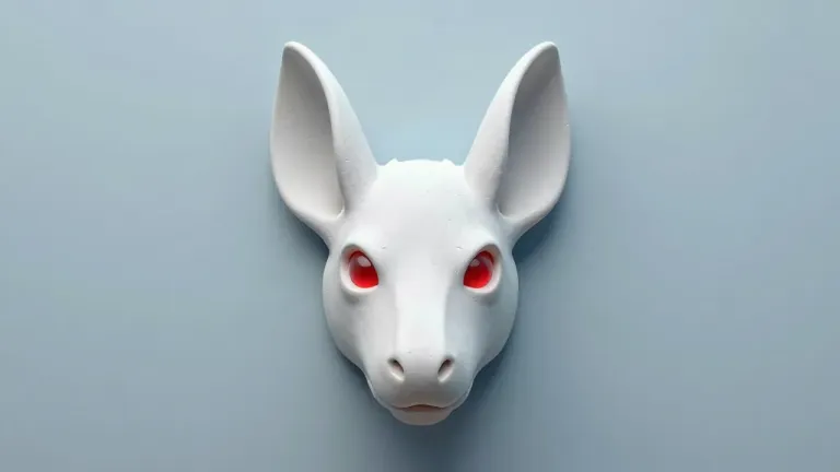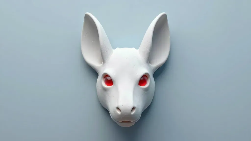 A glossy white bat icon with red eyes is centered against a light blue, blurred background, highlighting its smooth texture and warm glow from directional lighting. The clean, unobtrusive backdrop provides ample copy space for various design applications.