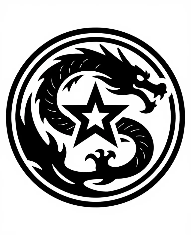 A detailed dragon and star emblem with textured scales and sharp star points, illuminated by soft, diffused light from above, creating subtle highlights. The clean white background ensures the emblem remains the focal point with ample copy space.