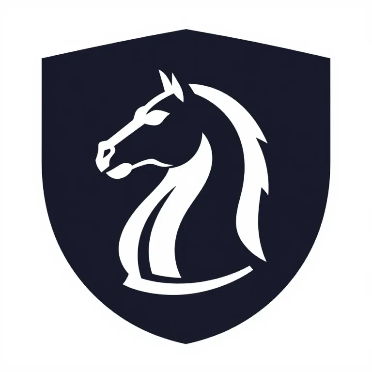 A glossy, metallic-like chess knight emblem in navy blue, highlighted by soft, directional lighting that enhances its three-dimensional appearance. The symmetrical and centralized composition offers ample copy space for branding or design elements.