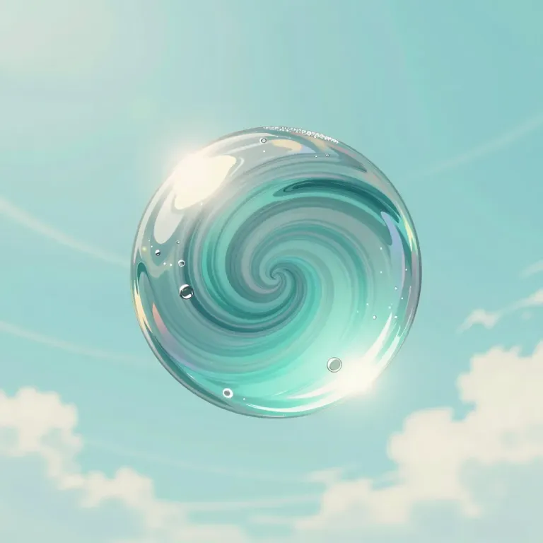 A translucent floating glass marble with a glossy, smooth surface reflects soft, diffused light, creating a mesmerizing swirl pattern against a light blue sky with wispy clouds. The shallow depth of field emphasizes the marble as the focal point, offering ample copy space for design integration.