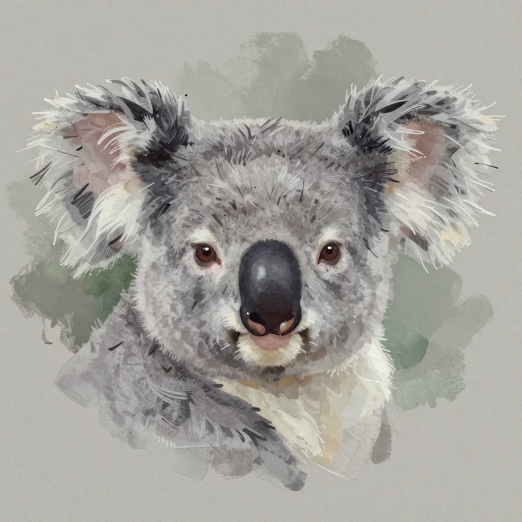 A close-up of a koala's face with soft, damp fur and individual strands visible, illuminated by soft, diffused lighting. The shallow depth of field and blurred green background emphasize the subject's texture and detail.