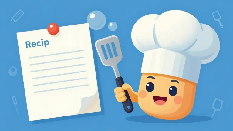 Two cartoon chefs, one holding a fork and a recipe, the other with a spatula, against a glossy blue background. Bright, even lighting highlights the chefs and the recipe board, creating a balanced and engaging composition.
