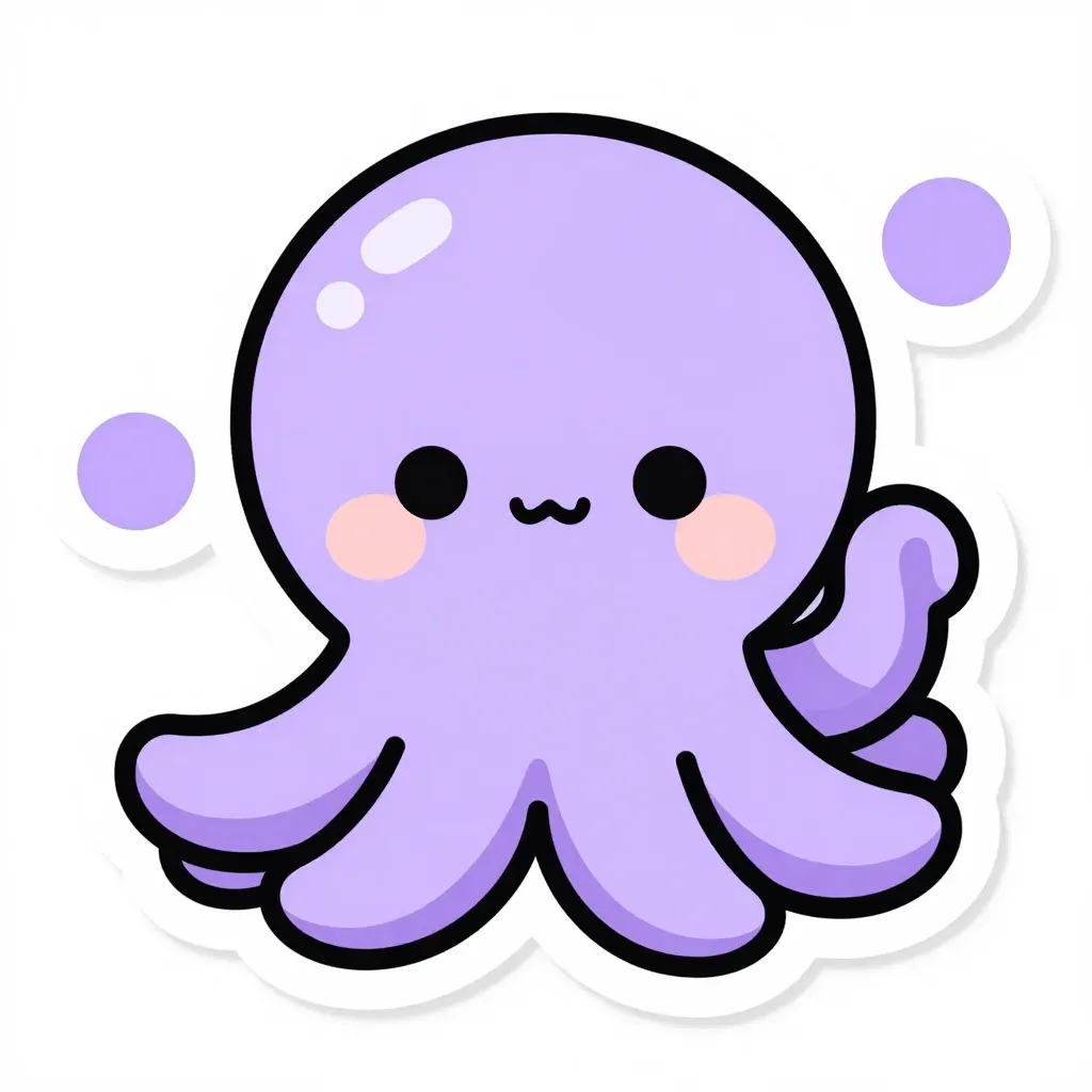 A cute lavender octopus with raised tentacles and a smiling face, illuminated by soft, diffused light from above, creating gentle highlights and shadows. The clean white background with a slight blur emphasizes the octopus, providing ample copy space for design integration.