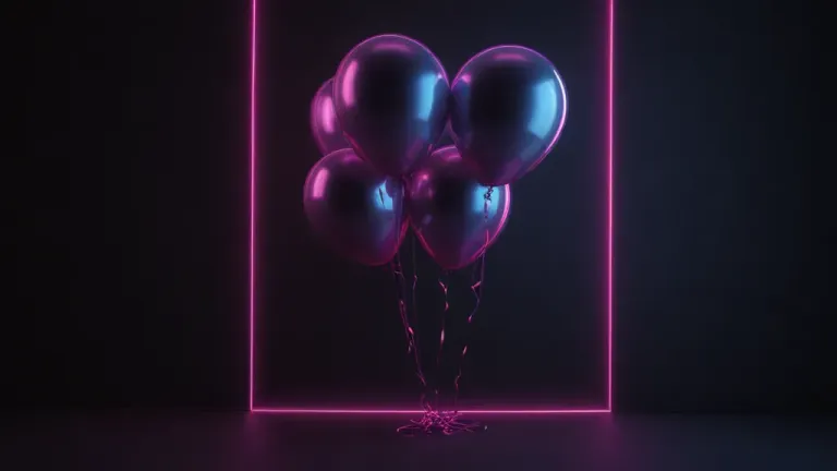 A cluster of metallic balloons reflects pink neon light, creating a vibrant and futuristic scene. The dark background and centered composition emphasize the balloons as the focal point, making this image ideal for modern, cyberpunk-themed designs.