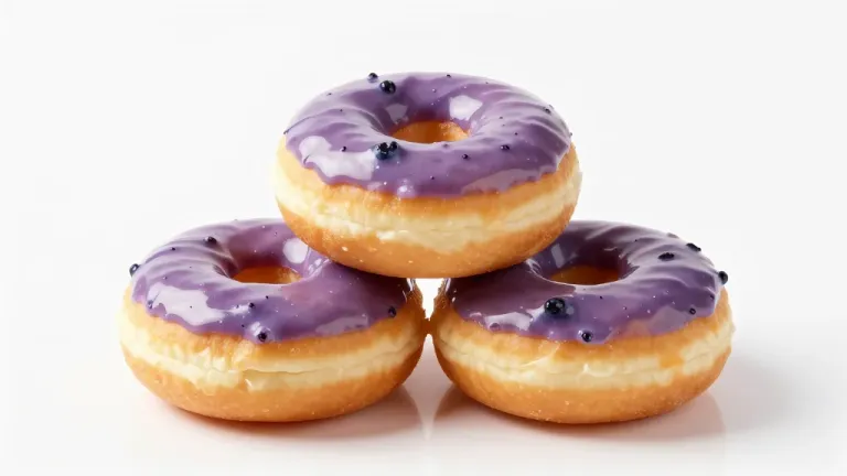 #donuts#purple glaze#blueberries#glossy#golden brown#diffused lighting#clean background#minimalistic#sweet#treat