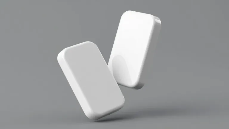 A set of glossy white dominoes arranged in a balanced, symmetrical composition with soft diffused lighting and subtle shadows. The neutral gray background provides a clean, minimalistic backdrop, ideal for product or abstract design elements.