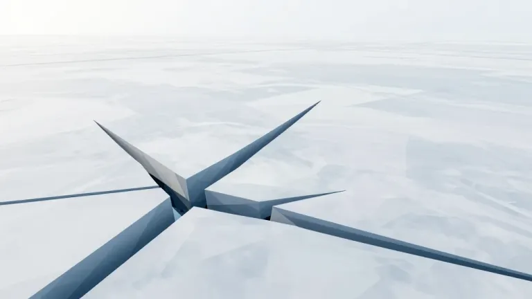 Glossy, sharp, and angular ice shards reflect soft natural light, creating highlights on their glossy edges. The close-up, angled view and shallow depth of field emphasize the texture and depth of the icy landscape, making it ideal for design elements or background imagery.