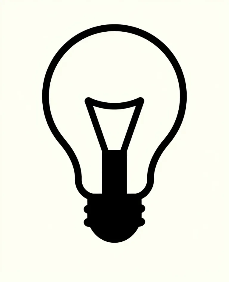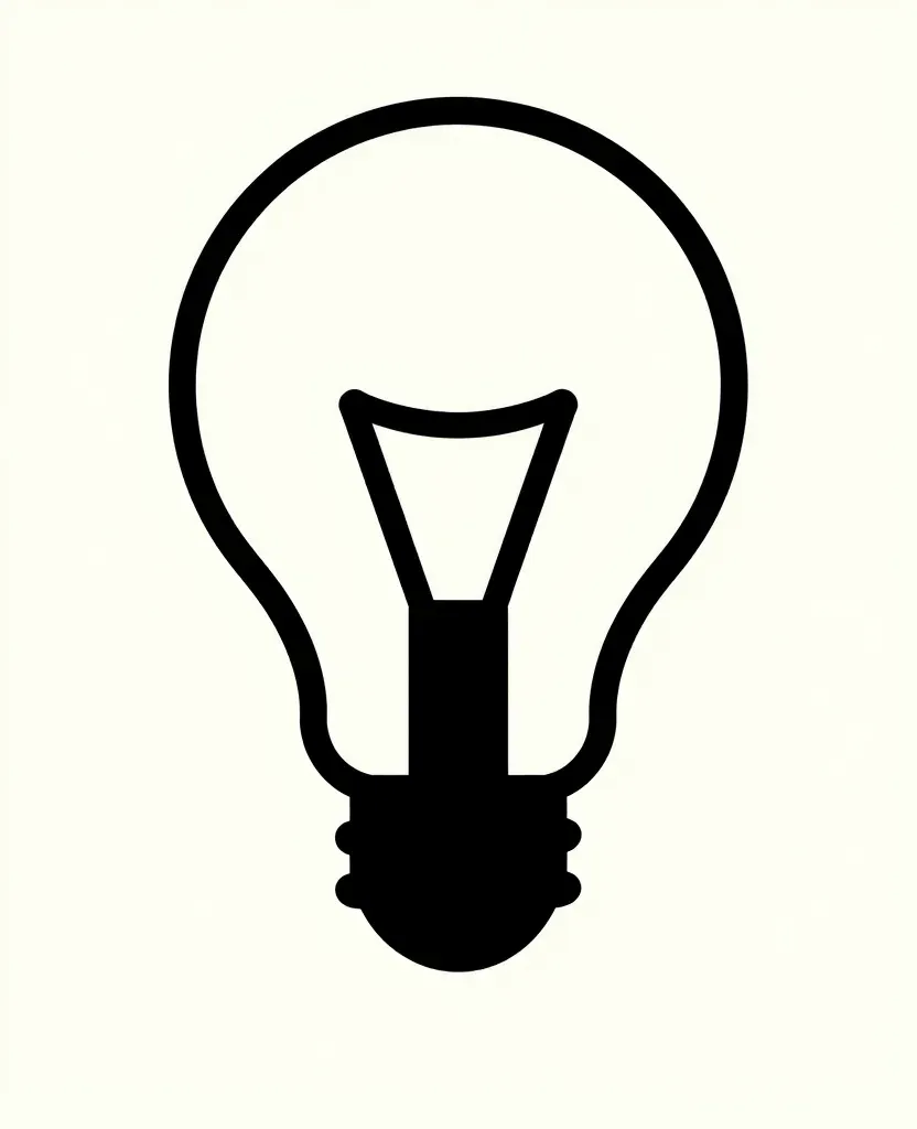 A smooth, glossy black lightbulb with a white filament, softly lit from above, creating highlights and shadows, set against a neutral, light gray background. The symmetrical composition with a slight tilt to the right provides ample copy space for design elements.