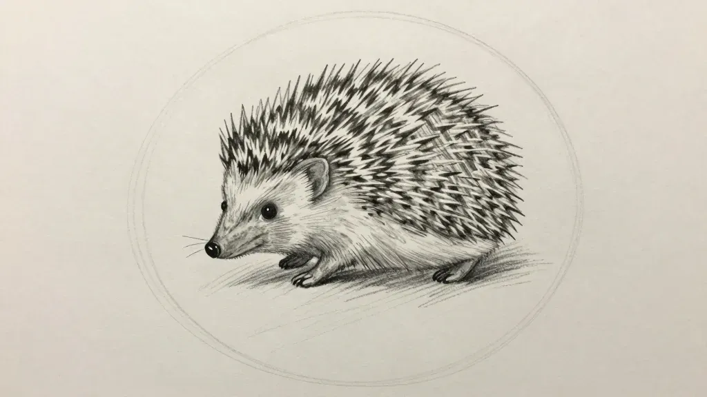 A hedgehog curled up in a tight ball, showcasing its sharp quills and soft body texture. The soft, diffused lighting highlights the hedgehog's features against a minimal background, providing ample copy space.