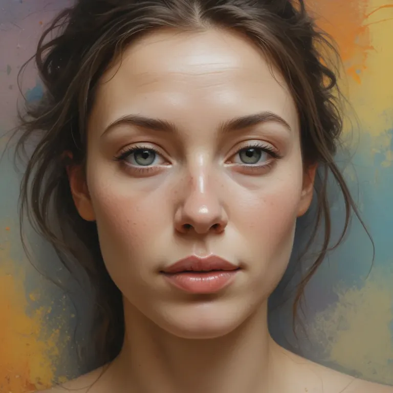 A close-up portrait of a person with smooth, luminous skin, softly illuminated by diffused light, emphasizing the texture and natural beauty. The vibrant, abstract background with a shallow depth of field enhances the subject's prominence.