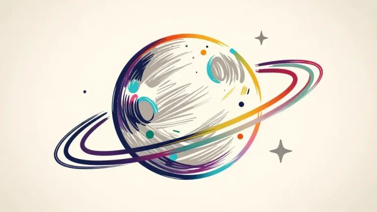 A vibrant, paintbrush-stroke depiction of a planet with rings, illuminated by soft, diffused lighting that highlights the surface and rings, set against a subtly blurred, off-white background with small star-like shapes, creating a sense of depth and cosmic wonder.