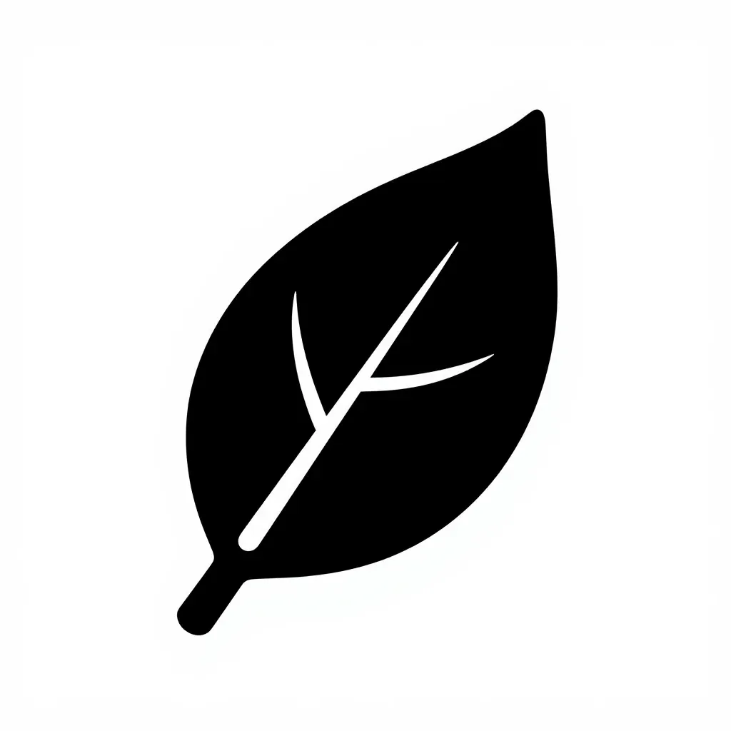 A glossy black leaf silhouette with delicate veins, softly lit from above, creating subtle shadows and a balanced, minimalistic composition. The light gradient background enhances the leaf's texture and depth, making it ideal for design elements or branding.