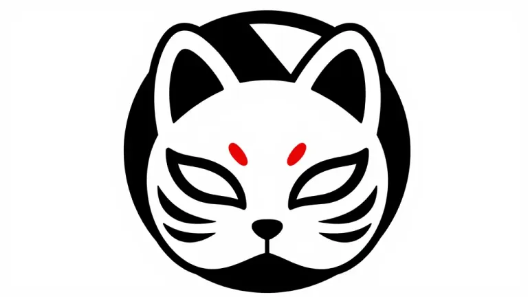 A smooth, glossy fox mask with red accents stands centered against a plain white background, creating a balanced and symmetrical composition with soft, diffused lighting that highlights the mask's features.