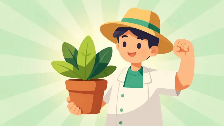 A botanist carefully holds a glossy green seedling, illuminated by warm, diffused light. The soft gradient background enhances the serene, natural setting, providing ample copy space for text.