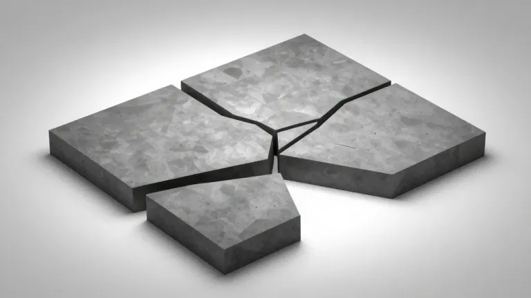 A rough, cracked concrete plate under diffused, soft lighting, creating subtle shadows. The neutral, blurred background emphasizes the plate's texture and structure.
