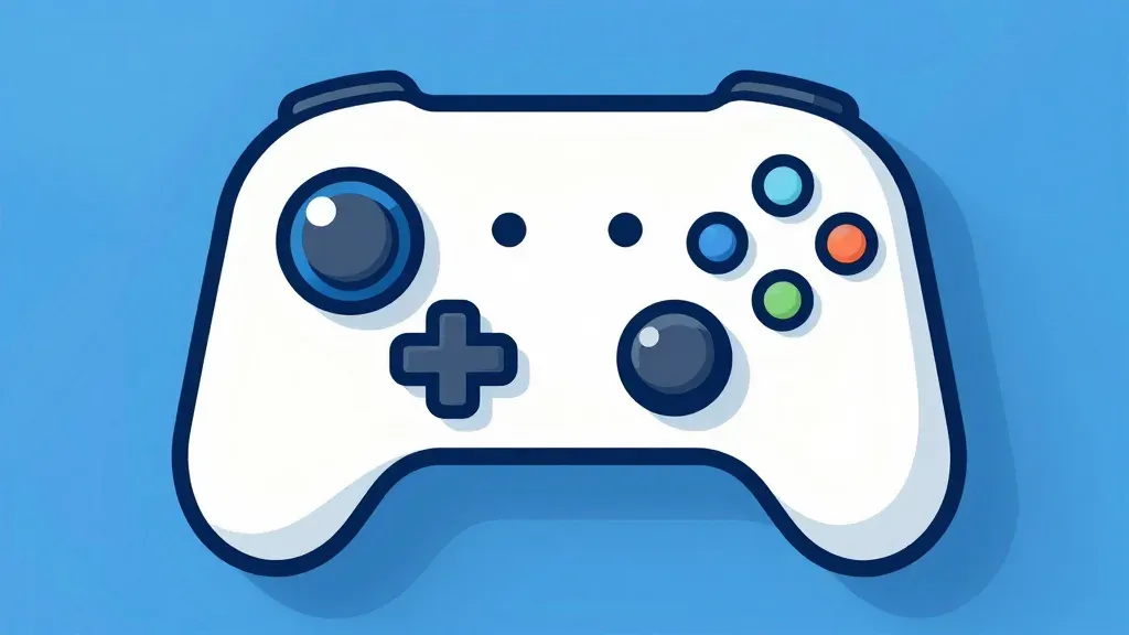 A glossy white game controller with blue accents is centered against a light blue, blurred background, creating a clean and simple backdrop. The diffused, soft light highlights the controller's smooth, slightly rounded edges and glossy finish, emphasizing its sleek design.