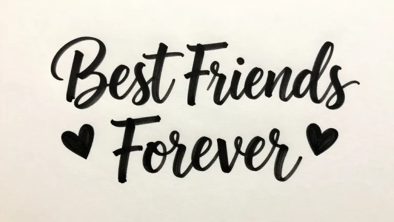 A handwritten phrase 'Best Friends Forever' accompanied by a small heart, set against a smooth white paper with a subtle sheen and black ink with a glossy finish. The soft, directional light from above creates gentle shadows and highlights, drawing the viewer's eye directly to the text and heart. The plain white background ensures the focus remains on the message, making it ideal for greeting cards or friendship-themed designs.