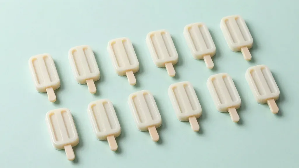 Smooth, glossy, slightly translucent ice cream bar icons scattered on a pastel green background, creating a soft, diffused lighting effect with subtle shadows. The uniform background and slight blur emphasize the icons, making them ideal for graphic design and branding applications.