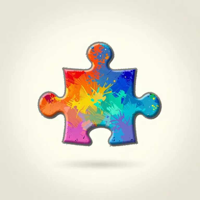 #puzzle piece#paint splatter#glossy finish#soft lighting#neutral background#abstract art#floating object#vibrant colors#design element#conceptual art