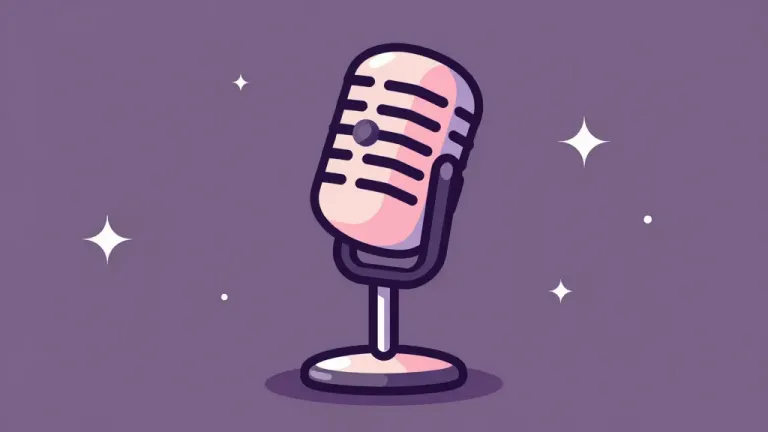 A vintage-style microphone on a stand, bathed in soft, ambient light, creating gentle shadows and highlights. The muted purple background with subtle sparkles provides a clean, distraction-free setting, ideal for product or branding shots.