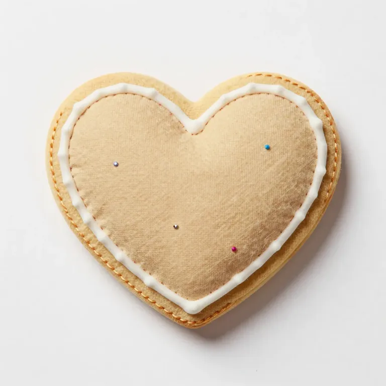 A golden-brown heart-shaped cookie with glossy white icing and small sprinkles, softly lit from above, creating gentle highlights and shadows that accentuate its shape and texture. The clean white background emphasizes the cookie's details and provides ample copy space.