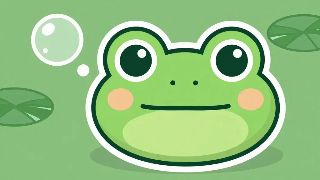 A frog with wide, expressive eyes and glossy skin gazes at a bubble in a pond setting, with soft, diffused lighting highlighting its features. The blurred background of lily pads and bubbles emphasizes the frog as the focal point.