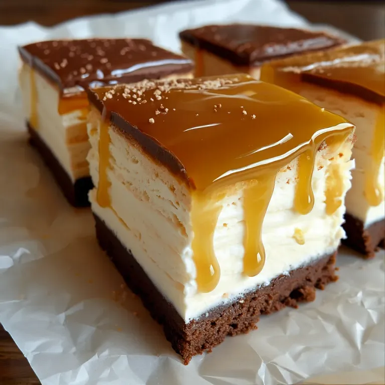 A creamy cheesecake slice with glossy caramel sauce dripping down, set against a soft, diffused light that highlights the dessert's textures and colors. The neutral parchment paper background ensures the focus remains on the appetizing dessert.