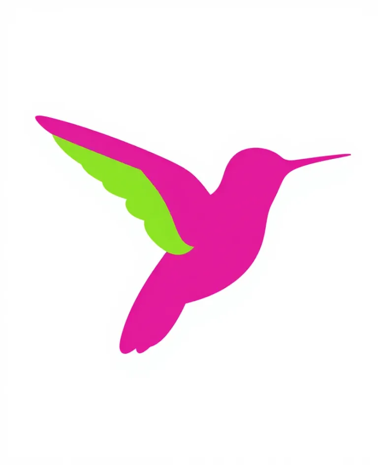 A vibrant pink hummingbird in flight with green wings, captured with soft, diffused lighting that highlights the bird's dynamic movement against a plain white background, providing ample copy space for various design applications.