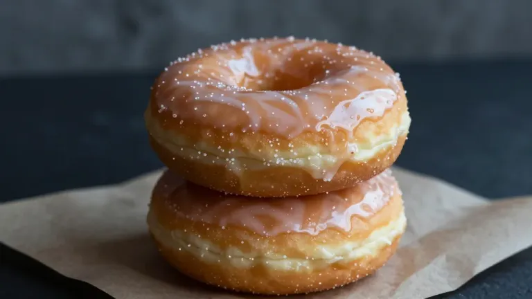 #Glazed Donut#Sugary Coating#Soft Interior#Glossy Glaze#Neutral Background#Close-Up#Food Photography#Bakery Product#Sweet Treat