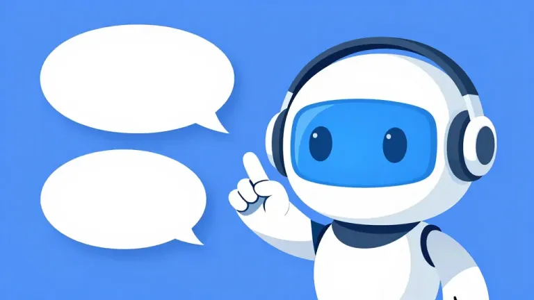 A robot assistant wearing a glossy white headset, bathed in soft, diffused light, creating gentle shadows. The minimal blue gradient background emphasizes the robot, offering ample copy space for text or design elements.