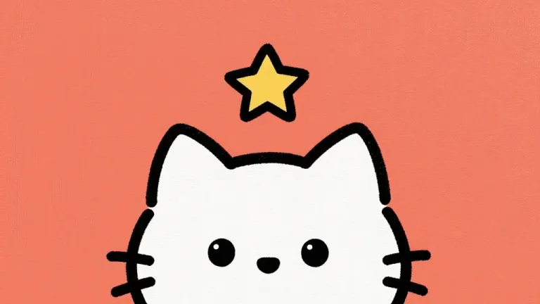 A white kitten with a yellow star on its forehead is centered against a soft, coral pink background. Even, soft lighting highlights the kitten's features without harsh shadows, creating a gentle and inviting atmosphere.
