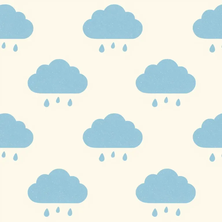 A repetitive pattern of hand-drawn, light blue clouds with raindrops against a soft, even beige background. The even lighting and clean composition make it ideal for background use in design projects.