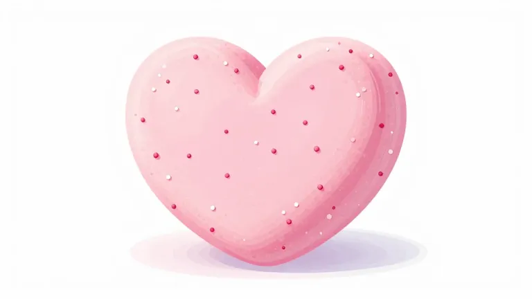 A glossy pink heart-shaped marshmallow adorned with small, shiny beads, set against a soft, pastel pink background that creates a warm, diffused lighting effect and emphasizes the marshmallow as the focal point. The slightly tilted composition adds a dynamic and engaging perspective to the image.