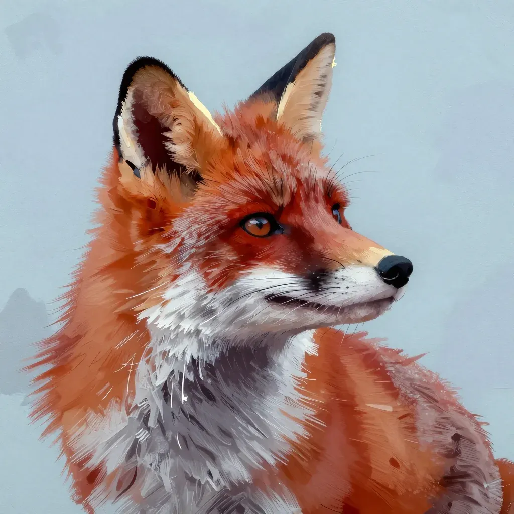 A close-up of a fox with soft, fluffy fur and detailed whiskers, bathed in soft, diffused light that highlights the texture and color of its fur. The blurred, calm blue background provides a serene backdrop.