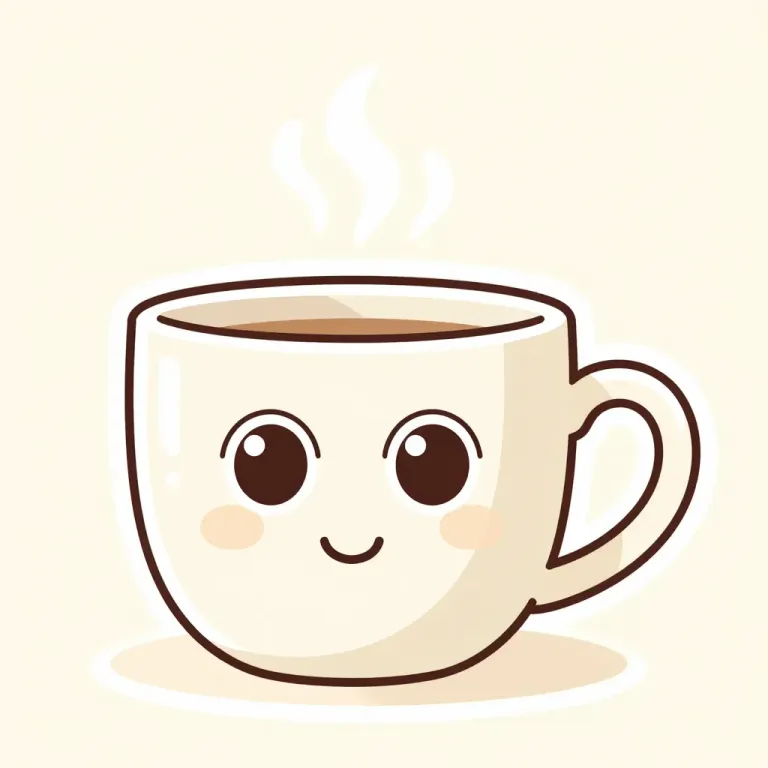 A glossy, smooth coffee cup with a face emits warm steam, creating a cozy and inviting atmosphere. The soft, diffused lighting highlights the cup's features and the steam, enhancing the image's warmth and comfort.