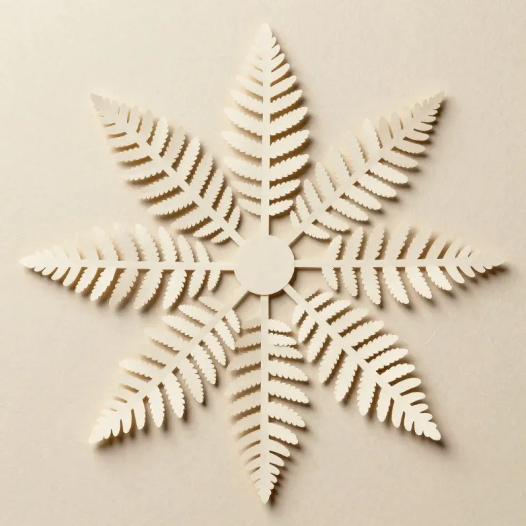 A delicate, intricately cut paper snowflake with fine, detailed cuts, illuminated by soft, natural light that casts gentle shadows, creating a dynamic balance against a neutral, textured background. The symmetrical composition and slight tilt add a sense of movement and elegance.