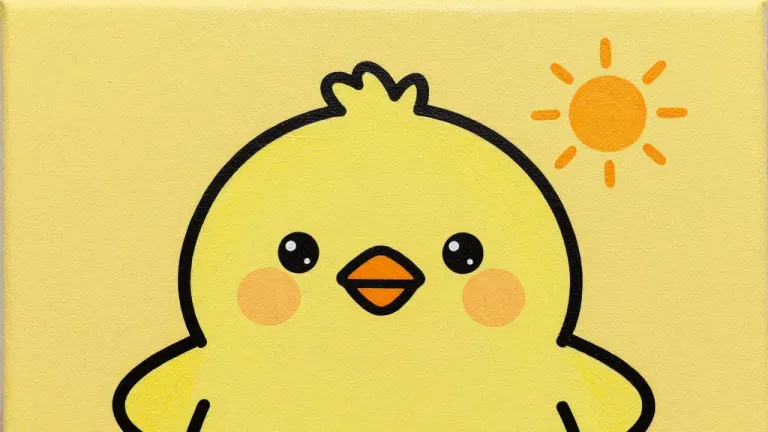 A cute chick with a fluffy crest and orange beak sits under soft, diffused sunlight, with a solid yellow background slightly blurred to emphasize the chick. The composition highlights the simplicity and charm of the subject with a clean and minimalistic design.