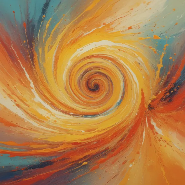 A dynamic spiral of warm colors radiates outward, emanating a warm glow from within, creating a sense of depth and movement. The blurred background and fluid textures enhance the visual impact and suggest a shallow depth of field.