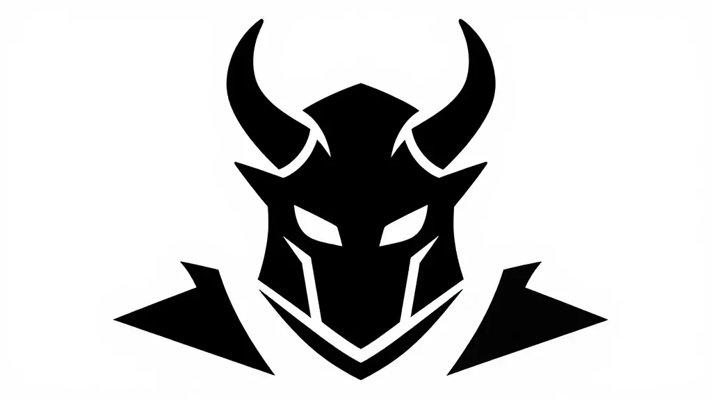 A glossy black dragon helm crest with sharp, angular details, set against a stark white background. The high-contrast lighting highlights the reflective surface and deep shadows, creating a dramatic and symmetrical composition.