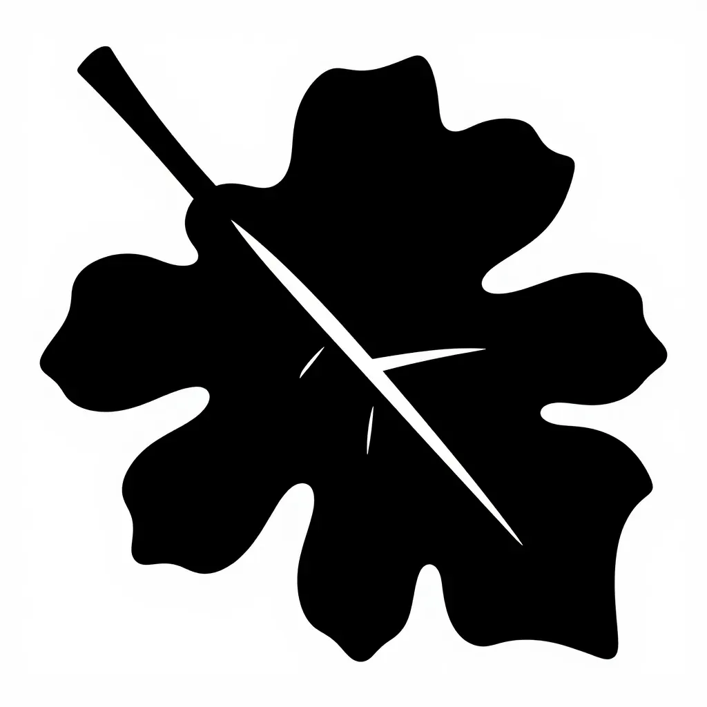 A glossy black leaf silhouette with intricate vein structure, illuminated by direct overhead light casting soft shadows, set against a plain white background to enhance focus on the leaf's detailed texture and form.